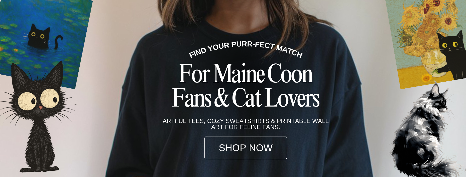 What began as a love for the gentle giants of the cat world turned into a space where art, humor, and design come together. From cozy apparel to purr-worthy prints, every piece in our shop is crafted to celebrate the quirks and elegance of cats — especially the big, beautiful Maine Coons.